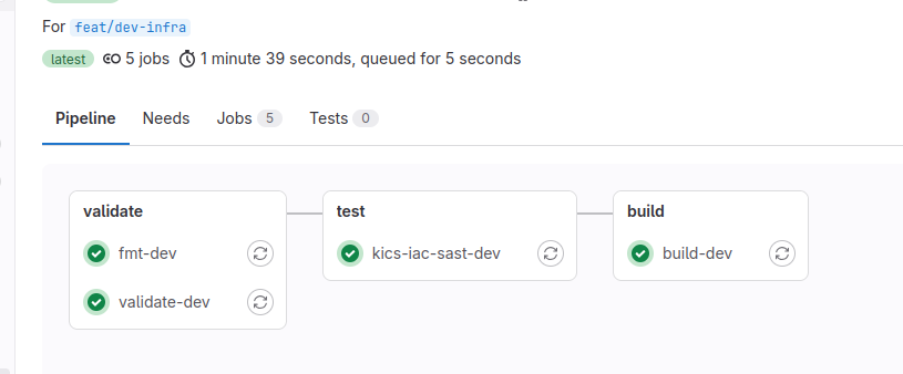 In test Gitlab built-in Infrastructure as Code Scanning is triggered. It will report you issues with your Terraform code in JSON format as part of artifacts