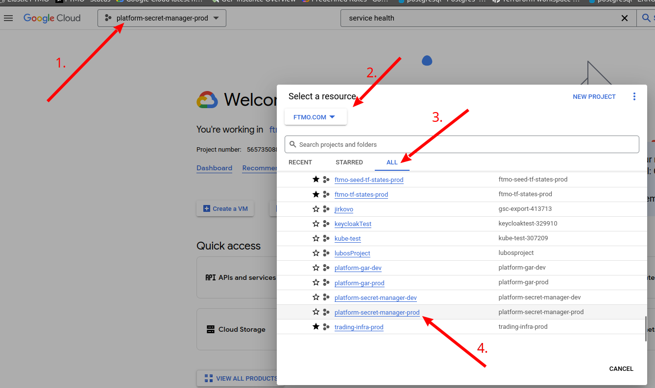 I don't have access to Secret Manager / I can't see Google project with secrets in web browser¶